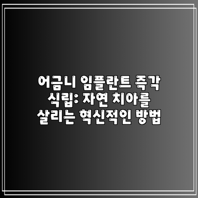 어금니 임플란트 즉각 식립: 자연 치아를 살리는 혁신적인 방법