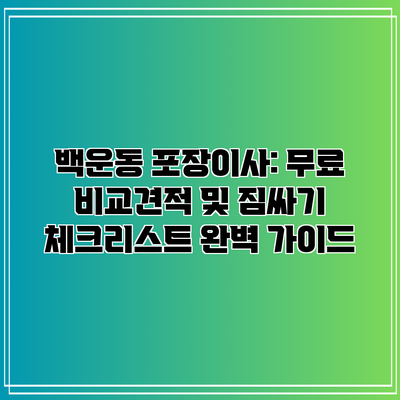 백운동에서 포장이사를 준비할 때, 잘 알고 준비하는 것이 무엇보다 중요한데요. 포장이사와 반포장이사의 특징을 이해하며, 비교견적을 통해 좋은 이사 업체를 선택하는 것이 필요합니다. 청소 서비스가 포함된 포장을 찾는 것도 이사 후 편리함을 더할 수 있습니다. 이제부터는 짐싸기 체크리스트도 함께 활용하면 준비 과정이 더욱 원활해질 거예요.
