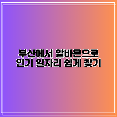 質問1: 부산에서 알바몬을 통해 아르바이트를 찾는 방법은 무엇인가요?