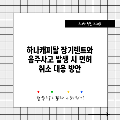 음주운전으로 인해 면허가 취소될 경우, 개인의 경제적 상황과 사회적 이미지 등 여러 요소에서 미치는 영향은 상상 이상으로 큽니다. 특히, 차량 장기렌트 계약을 체결한 경우라면 그 영향력은 배가 되죠. 음주사고로 면허가 취소될 경우, 하나캐피탈과의 계약 해지 가능성이 높습니다. 이 글에서는 하나캐피탈의 장기렌트 이용 시 음주사고와 면허 취소에 대한 대응 방안을 심층적으로 분석해보겠습니다.